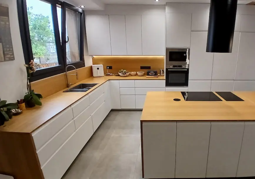 Resistencia y estética superior. Diseño elegante y natural en carpintería de interior, encimera de cocina, escaleras, etc.