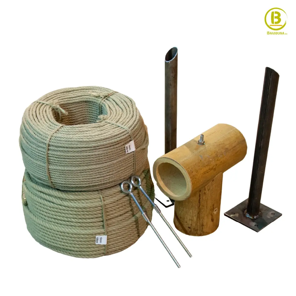 Cuerda resistente rayos UVA, bases de anclaje a suelo, accesorios de montaje y acabado